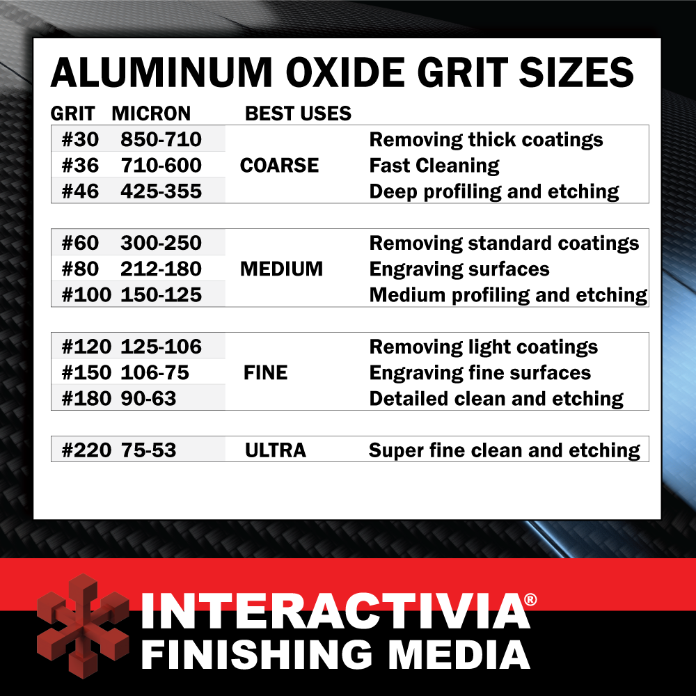 #30 Aluminum Oxide is a fast, versatile and economical cutting abrasive. Aluminum Oxide is the second hardest mineral on Earth, second only to diamond. Aluminum Oxide can be used in wet and dry blasting applications for cleaning, deburring, etching and finishing. Aluminum Oxide is ideal for etching the surface of glass as its hardness is greater than glass. Aluminum Oxide won’t break down as fast as glass blasting media and has a longer life cycle than most blast media.